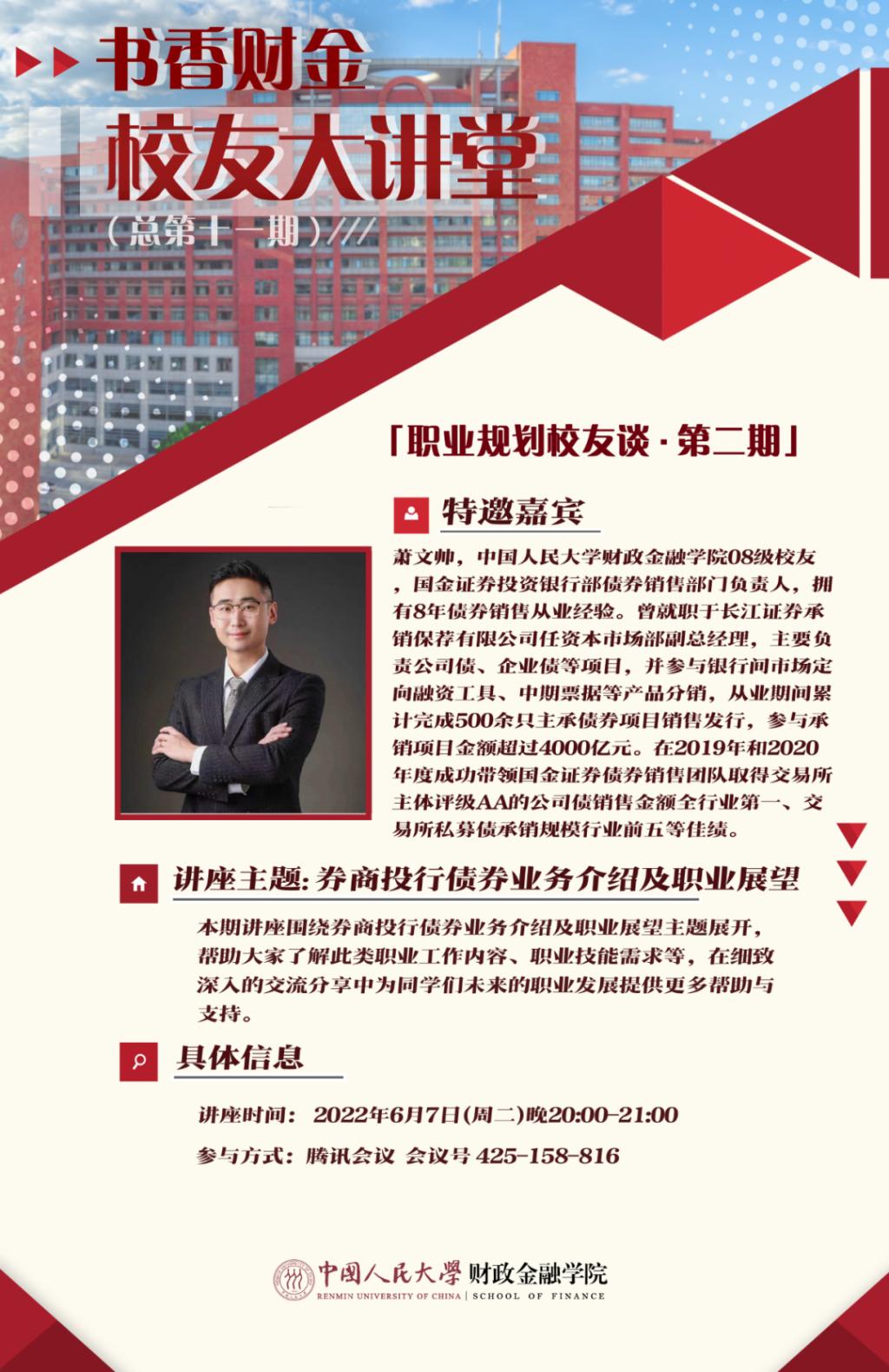 书香财金•校友大讲堂 | 职业规划校友谈第二期,听校友讲券商投行债券业务介绍及职业展望