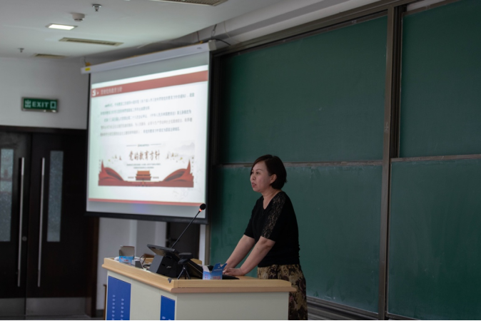 孙华玲书记主讲师德师风专题党课。围绕师德师风专题教育的工作背景、教育意义、要求规范、先进师德师风典型等方面深入讲解,孙华玲书记指出,我院教职工应深入学习贯彻习近平总书记关于“三个牢固树立”、“四有”好老师、“四个引路人”“四个相统一”“六要”等重要论述精神,遵守师德规范,向先进师德典型看齐,强化担当,做到知行合一。
