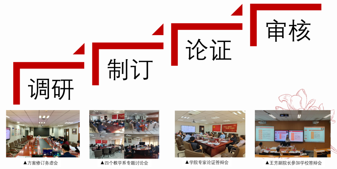 扎实落实,博采众长,对标一流水平。半年来,学院及各系广泛调研了国内外一流高校相关专业优秀经验,充分听取教师、学生、毕业生、教学管理部门等各方面意见和建议,加强与合作学院沟通协调,多次自上而下、自下而上反复优化方案,召开专家论证会进行严格论证,党政联席会多次审议,顺利通过学校答辩,最终形成了2022级本科培养方案。