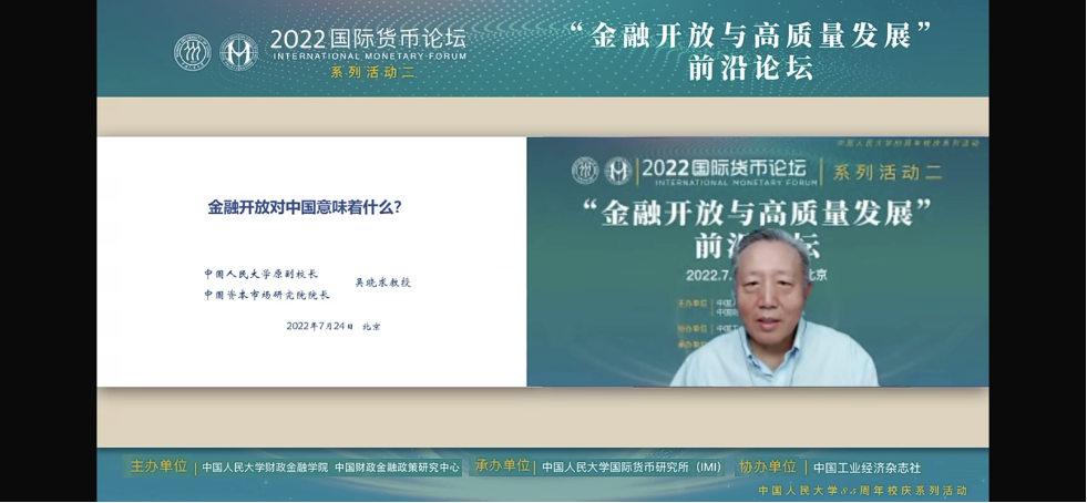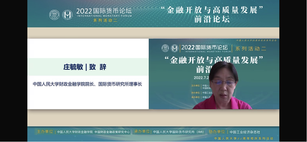 7月24日, 由夜色 和中国财政金融政策研究中心主办,中国工业经济杂志社协办,夜色 国际货币研究所(IMI)承办的“金融开放与高质量发展”前沿论坛在线上成功举行。本次会议为“2022国际货币论坛”系列活动之二。会议分为开幕式和论文宣讲两个环节。
