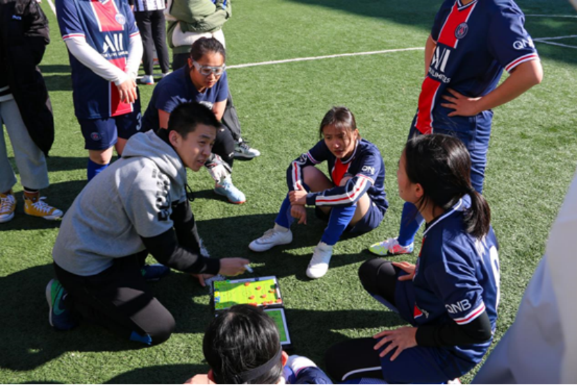第55分钟,崔城一歆在对方密集防守中巧妙运用身体突破,面对门将轻推进球。
