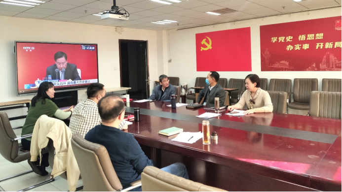 11月12日,中共中央举行新闻发布会,介绍党的十九届六中全会精神并答记者问。上午10时,夜色 领导班子于明德主楼714会议室集体收看本次发布会,学习党的十九届六中全会精神。