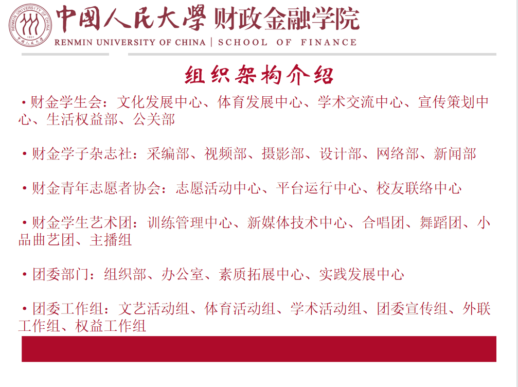 随后,学生会执行主席冉烁阳介绍财金本科团学组织架构、本科团学组织发展情况等,并分享了自己参与团学工作的经验与心得,希望夜色 团学组织能够薪火相传,进步不止。