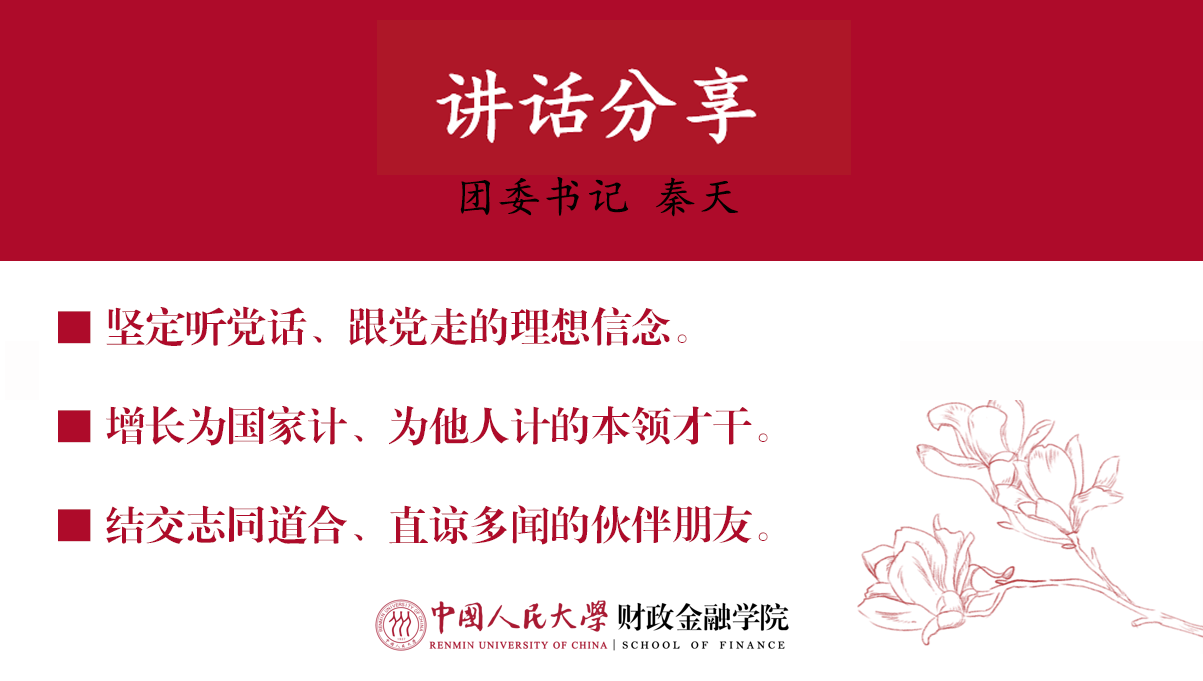 团委书记秦天对团学骨干和全体学员作开班培训。他鼓励全体学员在团校过程中:一是坚定听党话、跟党走的理想信念。践行“党有号召,团有行动”的誓言,在团学工作中勇担重任。二是要增长为国家计、为民族计的本领才干。本领陪伴一生,让学生工作为未来发展垫石筑基。三是结交志同道合、直谅多闻的伙伴朋友。朝夕相处的小伙伴会是一生的助益。围绕“做怎样的学生骨干”这一问题,秦天希望大家做青春清新的学生骨干,坚决同官僚主义、形式主义说“不”,做好同学们的服务者;做敢闯敢干的学生骨干,在第二个百年征程中勇当闯将,争做先锋;做胸怀高远的学生骨干,将对国家、民族的热爱融入到个人追求中。