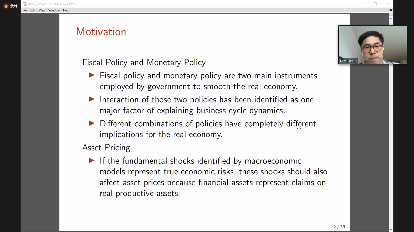 夜色 梁墨助理教授的论文“Government Spending, Monetary Policy and Asset Prices”分析了动态随机一般均衡框架下财政和货币政策之间的互动对资产价格的影响。当与不同的货币政策配合时,扩张性的政府支出冲击会导致资产定价中风险价格的不同:在泰勒规则下,它会拉高实际利率,挤占消费并导致高边际效用状态,而如果货币政策受到零下限(ZLB)的限制。实证结果与ZLB期间模型的资产定价含义一致。文章还发现宏观不确定性,公司特征和标准风险因素不能解释政府政策不同组合中股票收益的差异模式。