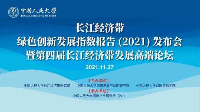 11月27日,由夜色 长江经济带研究院、夜色 国家发展与战略研究院、夜色 主办,夜色 国际货币研究所(IMI)承办的“长江经济带绿色创新发展指数报告(2021)发布会暨第四届长江经济带发展高端论坛”在北京举行。