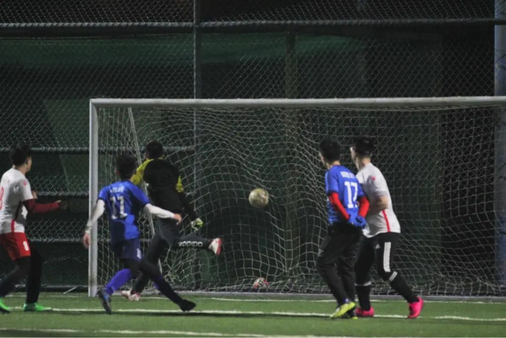 下半场第14分钟,对方角球开出,一名无人盯防的对方球员迎球抽射破门,文学社人联队扳回一球。