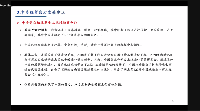 来自中央财经大学的陈闻达同学根据中美关系的相关数据及美国对华贸易政策,提出了需要辩证看待中美贸易摩擦、正确理解摩擦根源以及妥善处理后疫情时代中美经贸关系的看法。