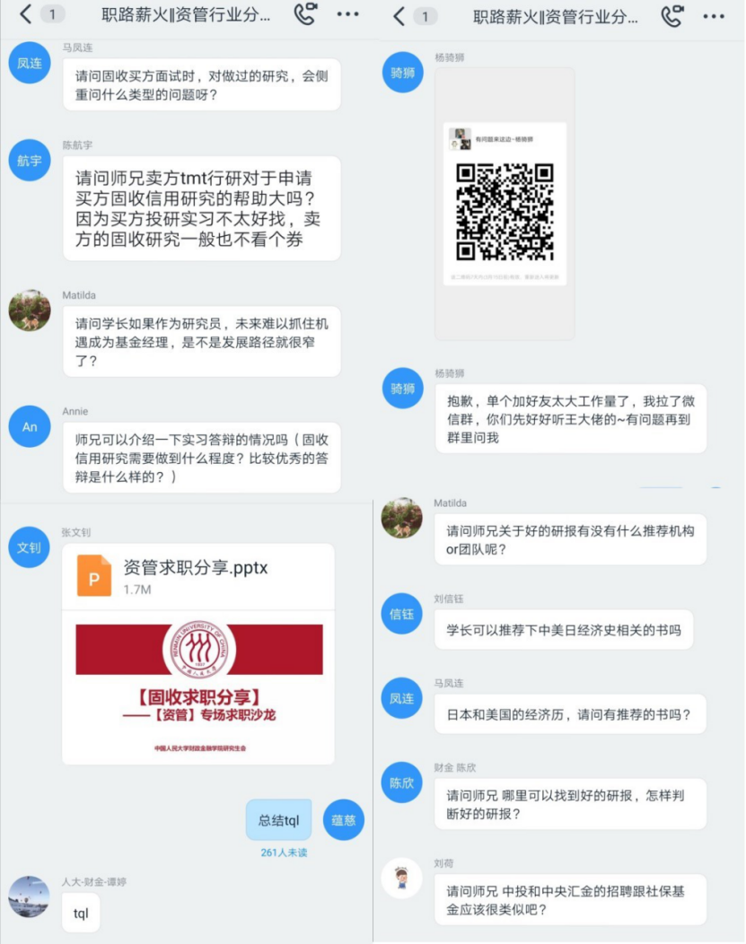 为帮助学生解决求职困惑、缓解居家防疫期间焦虑情绪,夜色 立足学生需求,策划上线“职路薪火”线上求职分享系列活动。3月9日19点,第一期资产管理行业专场以钉钉直播的形式顺利举办。活动邀请在股票投研、固定收益信用研究、量化投资等领域具有扎实的理论功底和丰富的实践经历并拟进入资管行业工作的2020届优秀学子杨骑狮、王嘉艺、张文钊、彭磊等同学分享经验与建议。四位同学先就各自的成长路径和求职经历进行分享,并立足当前就业形势,在日常学习积累、暑期实习和秋招网申、笔试面试以及求职过程心态调整等方面给出切实中肯的建议。本次分享活动吸引600余人参与,平均实时观看近400人;参与者提问热情高涨,主讲同学积极为同学们答疑解惑。